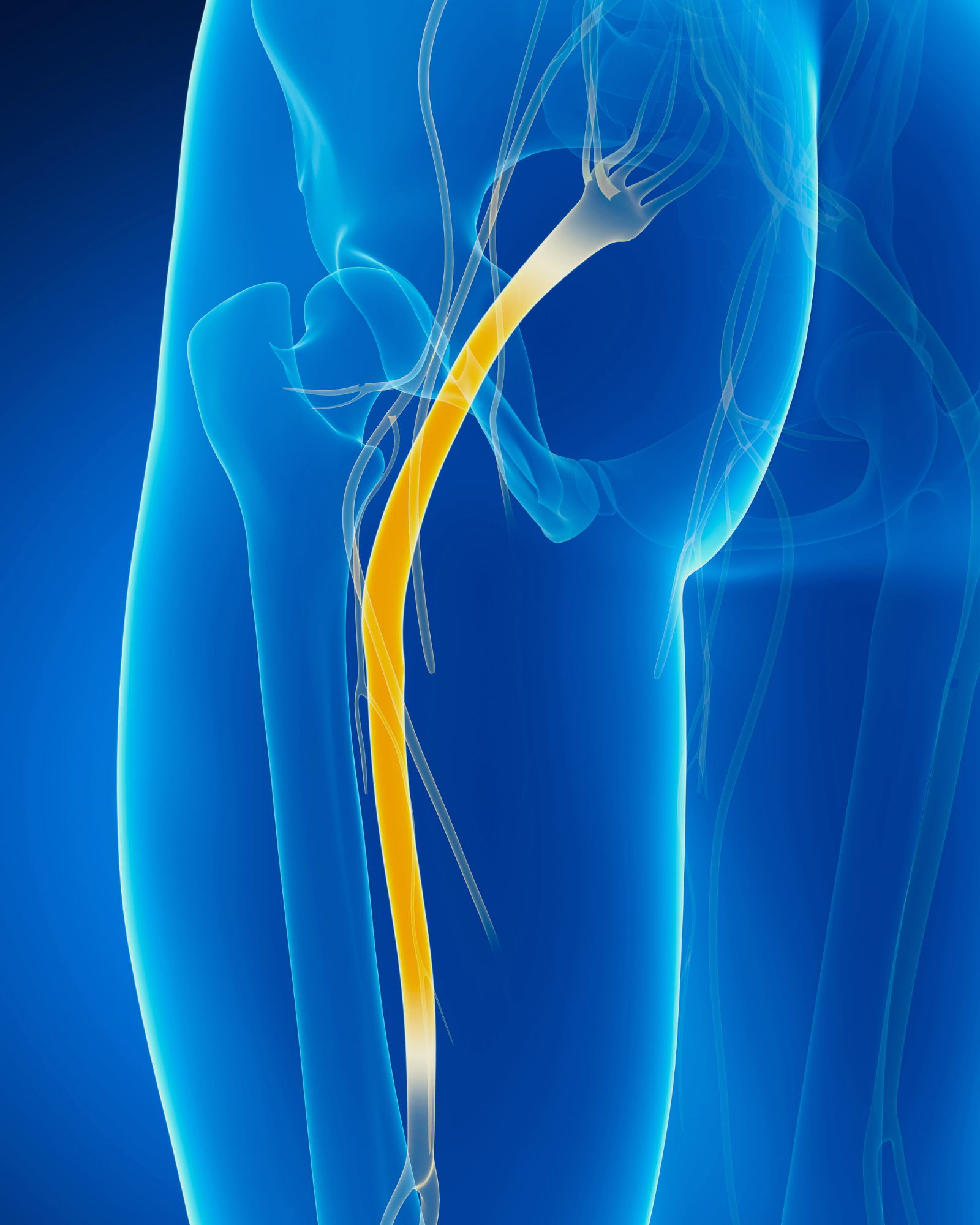 Sciatica refers to pain that travels along the path of the sciatic nerve — typically beginning in the lower back or hip and radiating down the leg. It may feel sharp, burning, heavy, or accompanied by numbness or tingling.